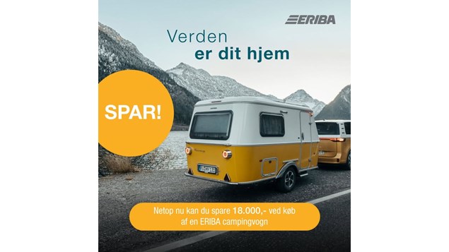 Slagelse Camping og Outdoor Center tilbyder en rabat på 18.000 kr. ved køb af en ERIBA campingvogn. Denne kompakte letvægtsvogn er designet med fokus på aerodynamik og funktionalitet og kan trækkes af mindre biler. Rabatten gælder til den 30. november. For mere information kan du læse det oprindelige opslag.